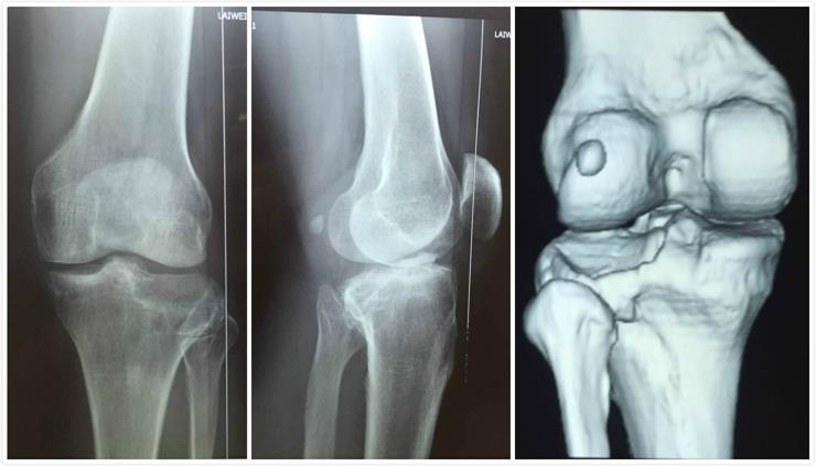 男性病人,43歲,左脛骨平臺后外側塌陷骨折。